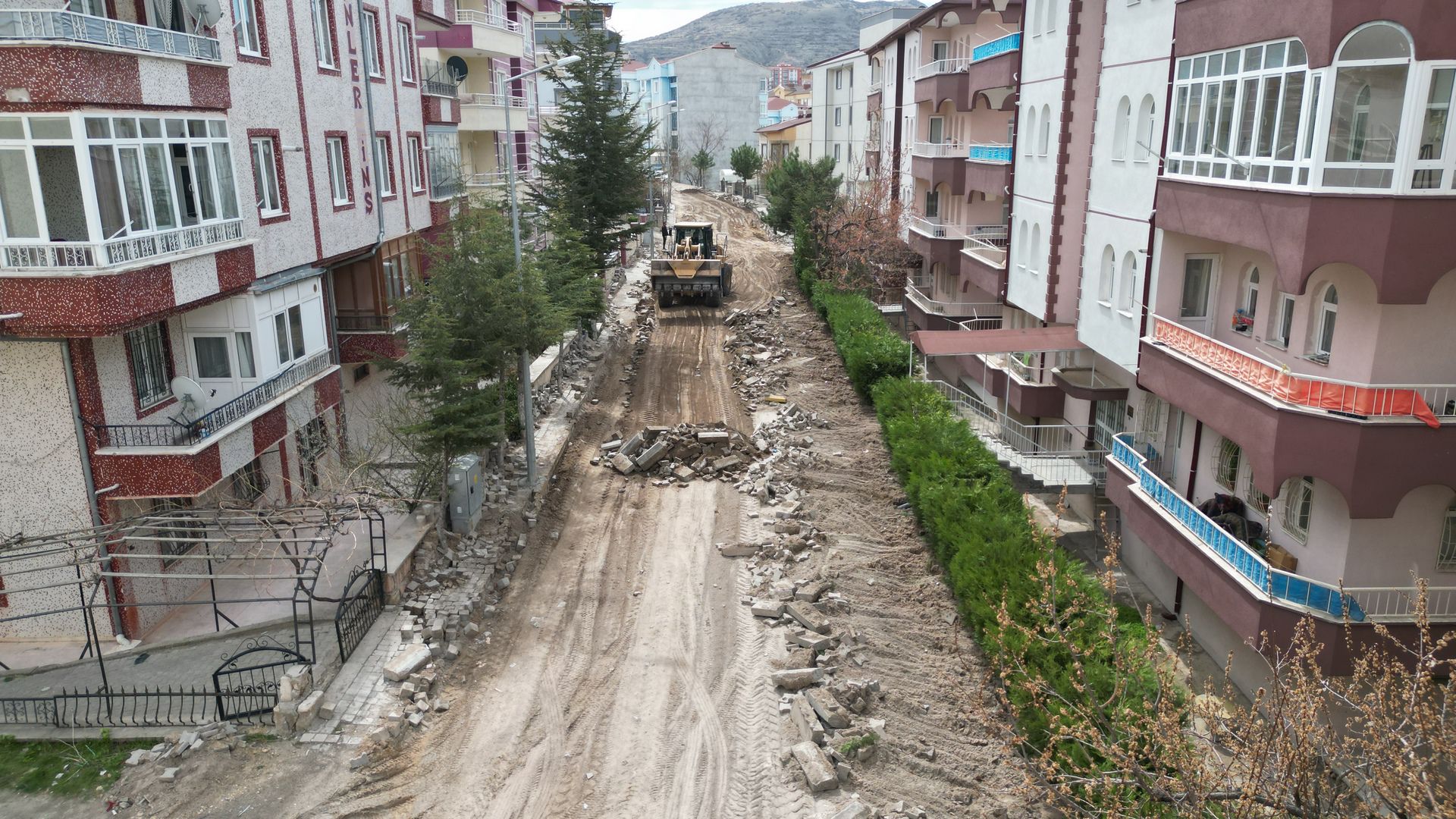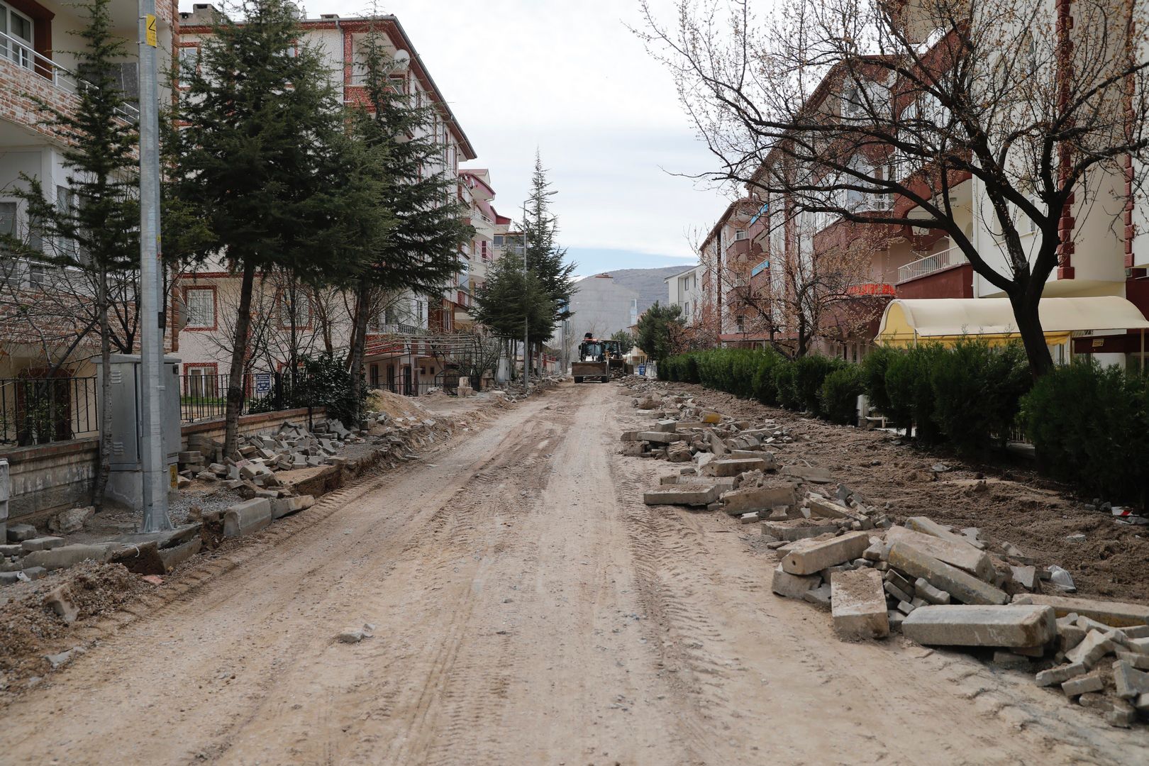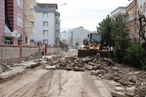 Sabah saatlerinde iş makineleri tarafından sökümüne başlanılan sokaktaki yollar ve yaya kaldırımları kısa süre içerisinde yenilenecek.