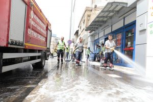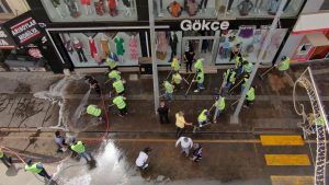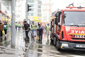 Belediye Başkan Yardımcısı Furkan Feralan’ın nezaretindeki çalışmada, Atatürk, Milli İrade, Lale ve Belediye caddesi yıkandı.