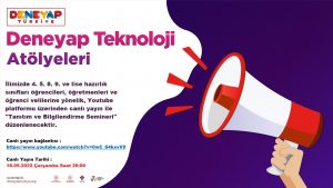 Nevşehir’de kurulacak “Deneyap Teknoloji Atölyesi” tanıtım ve bilgilendirme faaliyetleri kapsamında Youtube platformu üzerinden seminer gerçekleştirilecek. İl Sanayi ve Teknoloji Müdürlüğünce yapılan açıklamada; “Bilindiği gibi geleceğin teknoloji yıldızlarını yetiştirmek üzere ilimizde çılacak olan Deneyap Teknoloji Atölyesi için 31 Mayıs 2022 tarihine kadar öğrenci başvuruları alınmaya devam edilmektedir. Bu kapsamda Deneyap Teknoloji Atölyesi gerekli tanıtım ve duyuru çalışmalarına devam edilmekte olup, iletişim çalışmaları kapsamında ‘Deneyap Türkiye’ projesinin tüm öğretmen, öğrenci ve velilere duyurulabilmesi için Sanayi ve Teknoloji Bakanlığımızca Youtube platformu üzerinden canlı yayın ile tanıtım ve bilgilendirme yapılması planlanmıştır. Bu kapsamda 18.05.2022 Çarşamba günü saat 20:00’da ‘Deneyap Türkiye’ Youtube hesabından ‘Veli Bilgilendirme Semineri’ gerçekleştirilecektir. İlimiz 4. 5. 8. 9. ve lise hazırlık sınıfları öğrencileri, öğretmenleri ve öğrenci velilerine yönelik gerçekleştirilecek seminere ilişkin Youtube platformu canlı yayın bilgileri aşağıda sunulmuş olup, ilgililerin bahse konu seminere katılmalarını bekliyoruz.” ifadelerine yer verildi.