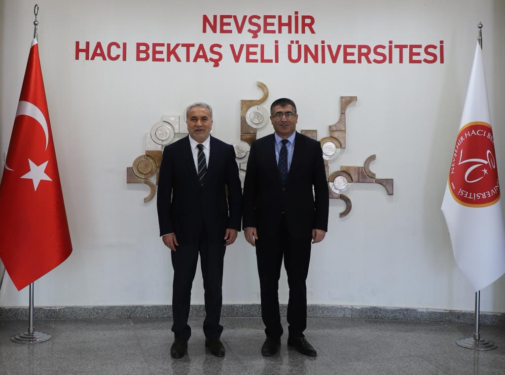 Yozgat Bozok Üniversitesi (YOBÜ) Rektörü Prof. Dr. Ahmet Karadağ beraberinde Rektör Yardımcısı Prof. Dr. Yücel Güney ile birlikte, Nevşehir Hacı Bektaş Veli Üniversitesi (NEVÜ) Rektörü Prof. Dr. Semih Aktekin’i ziyaret etti.