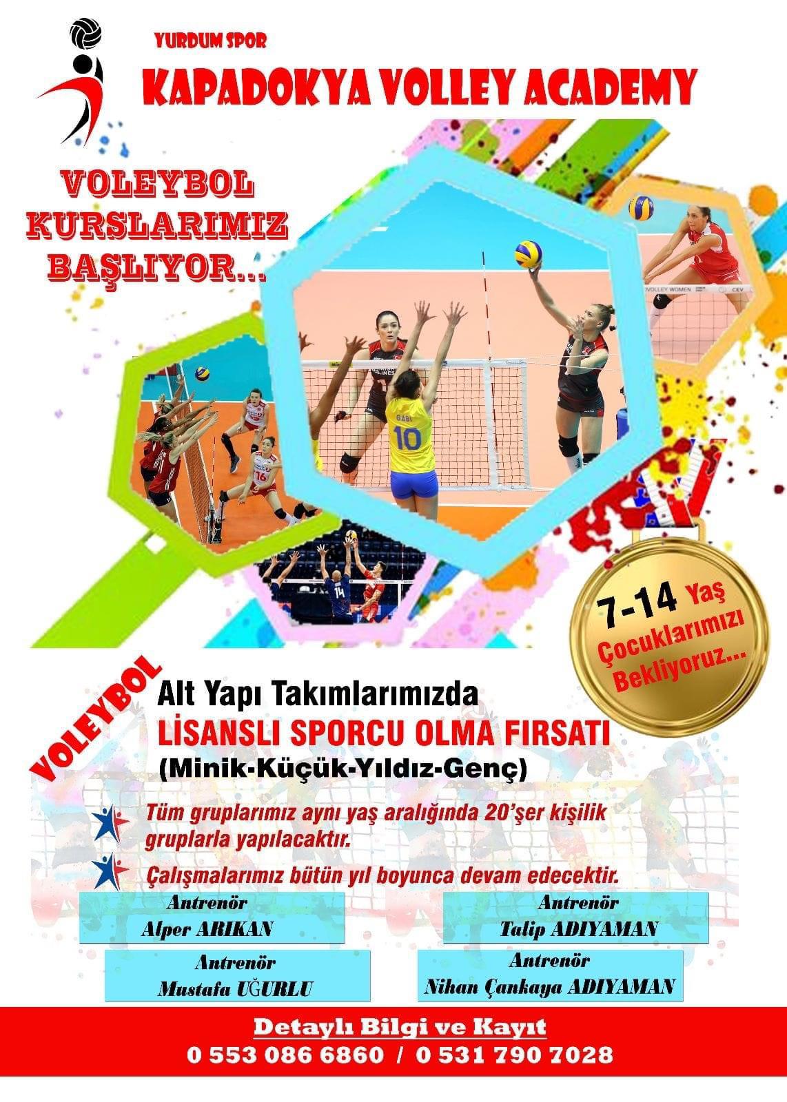 Alt yapı takımlarında lisanslı sporcu olma fırsatı veren Kapadokya Voleybol Akademi; minik, küçük, yıldız ve genç kategorileri ile geniş bir sporcu yelpazesinde çalışmalar yapacak. Voleybol kurslarının başladığı bildirilirken tüm grupların aynı yaş aralığında 20’şer kişilik gruplarla düzenleneceği bildirildi.