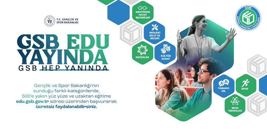 Gençlik ve Spor Bakanı Dr. Osman Aşkın Bak, gençlerin eğitim ve kariyer gelişimine katkı sağlayacak GSB EDU Web Sayfasının hayata geçirildiğini bildirdi. Proje ile Bakanlığa bağlı tüm tesislerde spor-eğitim kurslarının yanı sıra kültür-sanat, bilim-teknoloji, mesleki yetkinlik ve yabancı dil gibi yüzlerce eğitim ücretsiz olarak verilecek.
