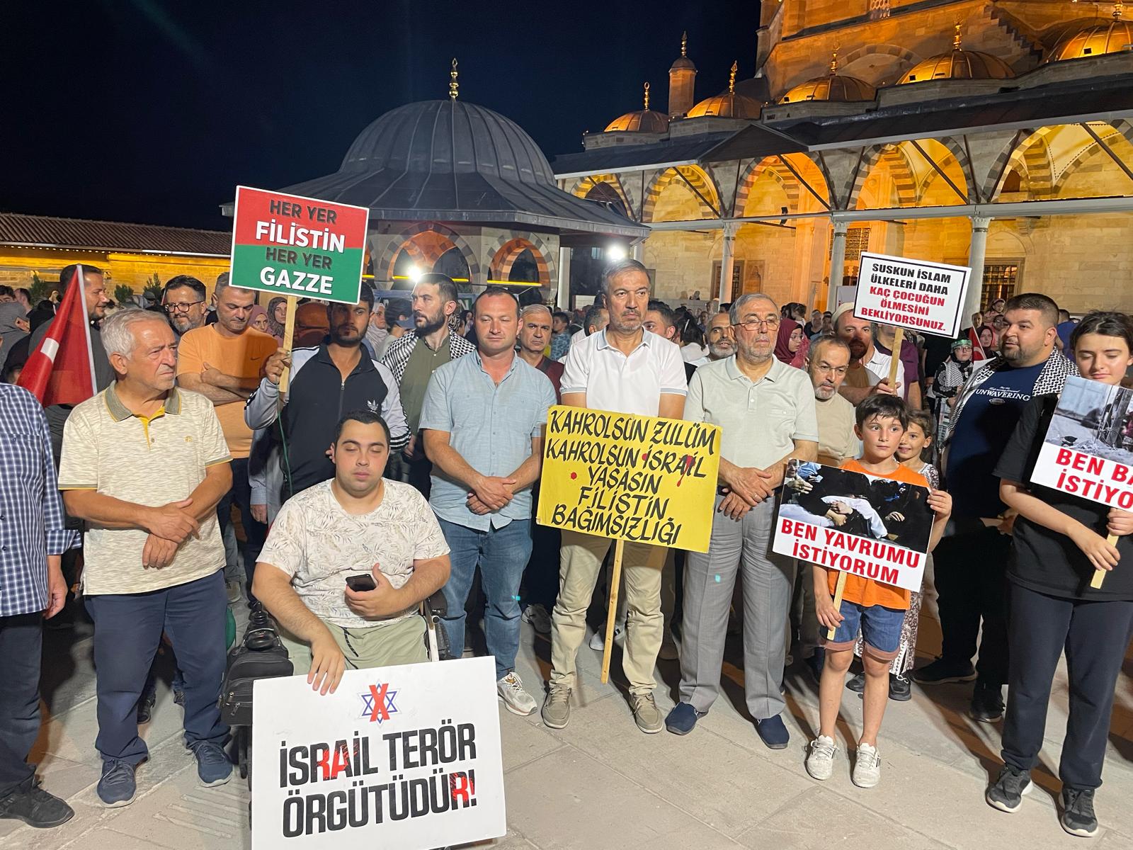 Cami avlusunda gerçekleştirilen etkinlikte, Filistin’de yaşanan insanlık dramına dikkat çekilirken, Kudüs’ün özgürlüğü için toplumsal duyarlılığın artırılması hedeflendi. Programda konuşmalar, ilahiler, dualar ve çocuklara yönelik etkinlikler de yer aldı.