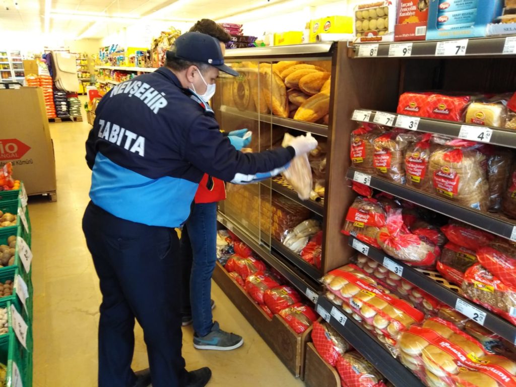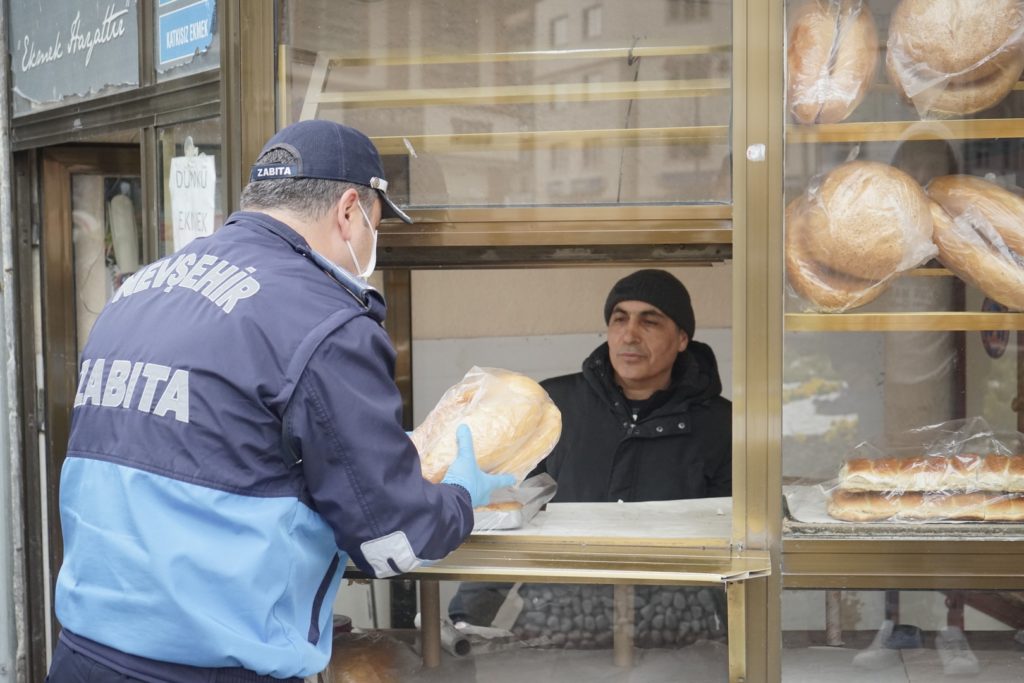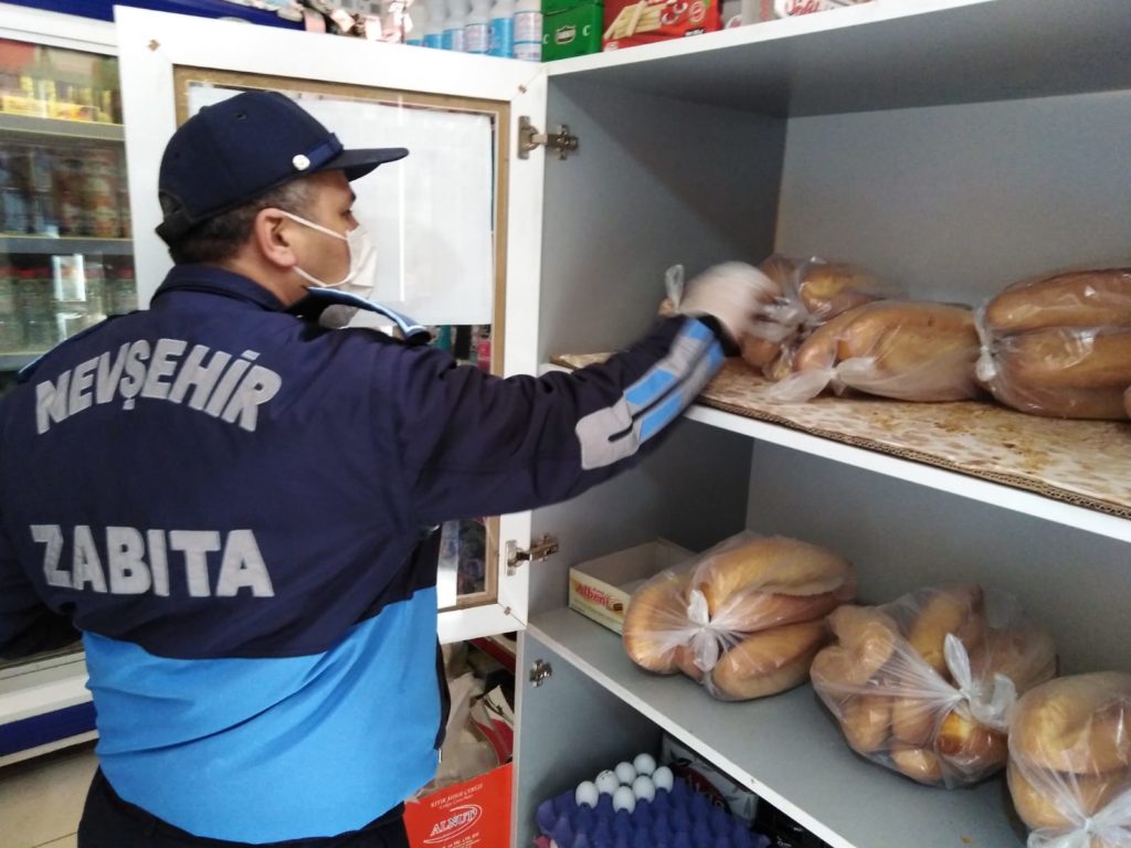 Koronavirüs salgını önlemleri kapsamında Tarım ve Orman Bakanlığı’nın yayımladığı genelge ile birlikte ekmek ve ekmek çeşitlerinin ambalajlı satılması kararının ardından Nevşehir Belediyesi Zabıta Müdürlüğü ekipleri, şehir merkezinde ekmek ve pide satışının yapıldığı fırın, büfe, bakkal ve marketlere yönelik denetimlerini sürdürüyor.