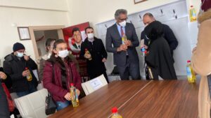 Türk Eğitim Sen Nevşehir yönetim kurulu üyeleri açıklamalarını yaptıktan sonra eğitim çalışanlarına enflasyona ve memurlara yapılan zammın düşüklüğüne dikkat çekmek için Ayçiçek yağı dağıttı.