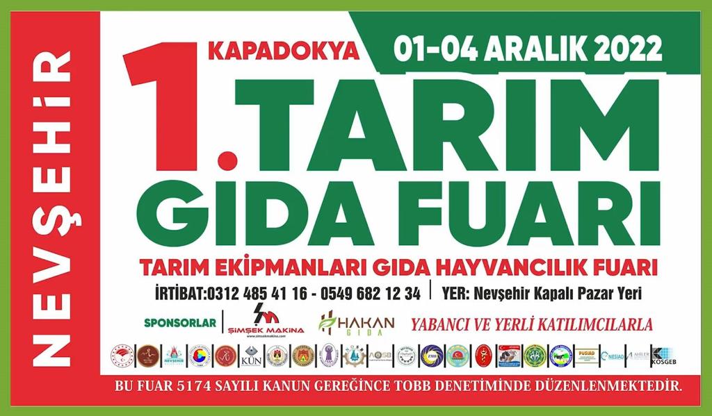 Konu hakkında açıklama yapan Nevşehir Ziraat Odaları İl Koordinasyon Başkanlığı; “Nevşehir İl ve İlçe Ziraat Odalarımızın talebi üzerine, Tarım ve Orman Bakanlığının desteği ve odalarımızın katkılarıyla 1-4 Aralık 2022 tarihlerinde Nevşehir’de ilk kez Tarım Gıda ve Hayvancılık Fuarı düzenlenecektir. Vatandaşlarımızı fuar alanında açtığımız standımıza çeşitli ikramlarda bulunarak çay içmeye, sohbet etmeye bekliyoruz. Fuara katılmak isteyen herkes davetlidir” denildi.