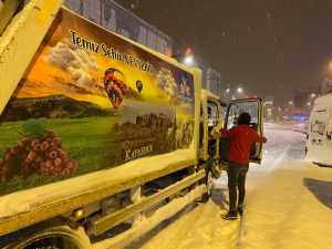 Türk Kızılay’ın Türkiye Afet Müdahale Planı Kapsamında görevi olan beslenme ve lojistik hizmetleri kapsamında yapılan görevlerde Yoğun kar yağışı sebebiyle yollarda mahsur kalan araçlara toplamda 650 kişilik kumanya desteği sağlandı.